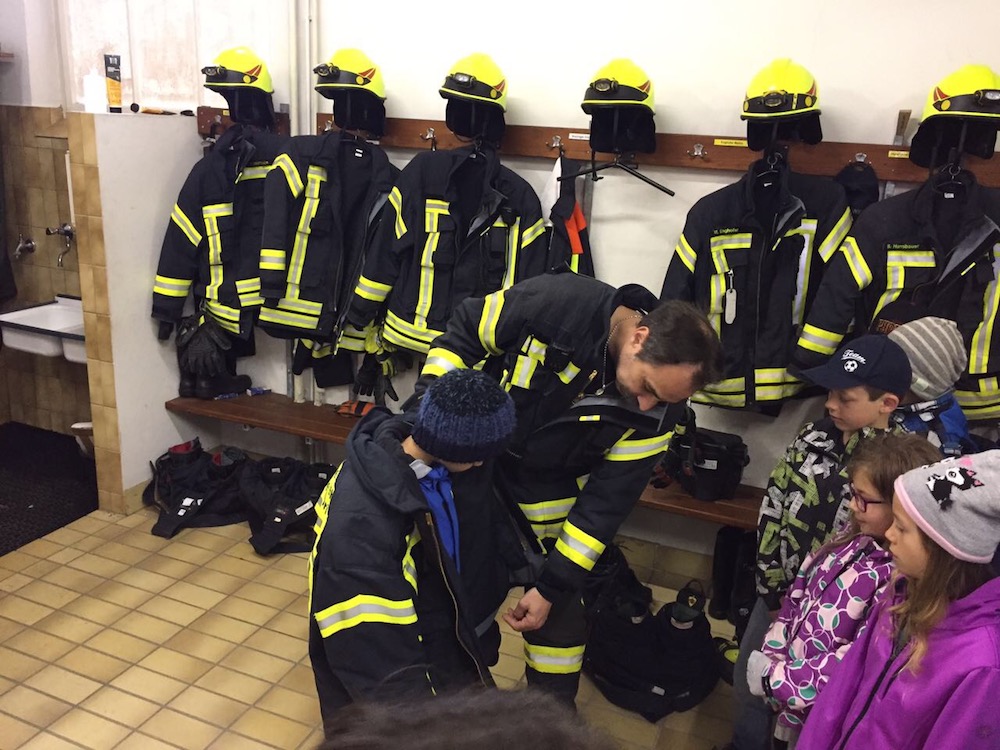 Sie konnten in die Schutzanzüge schlüpfen um zu sehen mit welcher persönlichen Ausrüstung zu den Einsätzen gefahren wird.