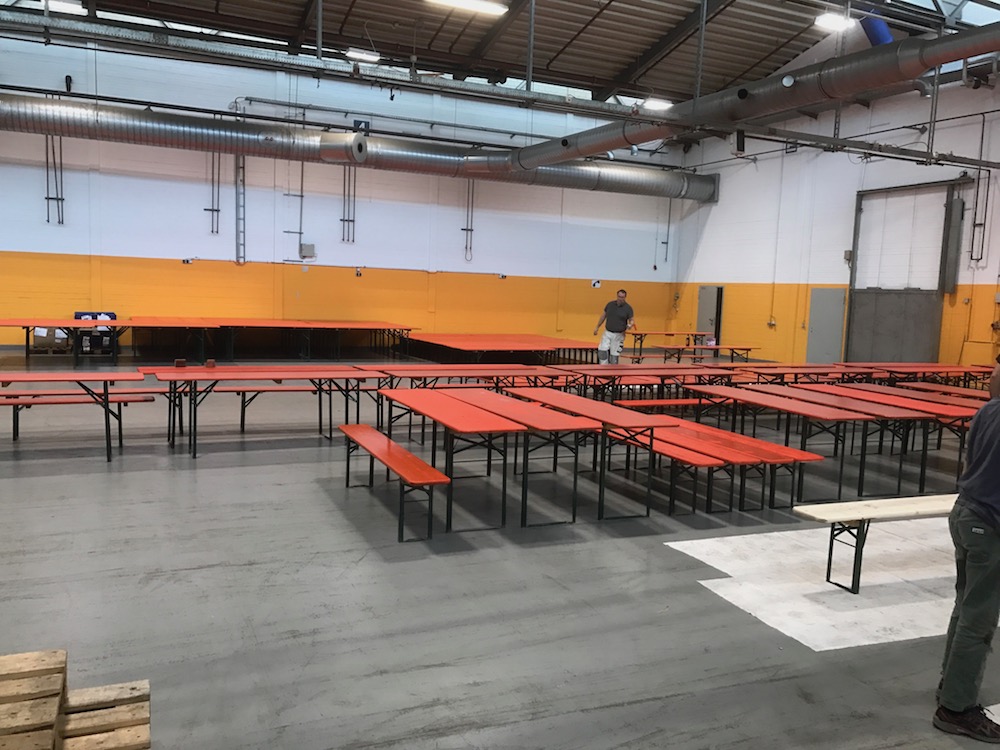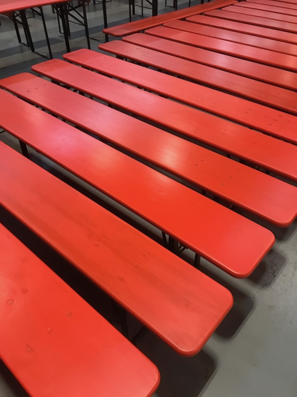 Um 08:00 Uhr morgens ging es mit 100 Bierzeltgarnituren in die FA. AMVIAN um diese mit einem neuen Anstrich zu versehen.