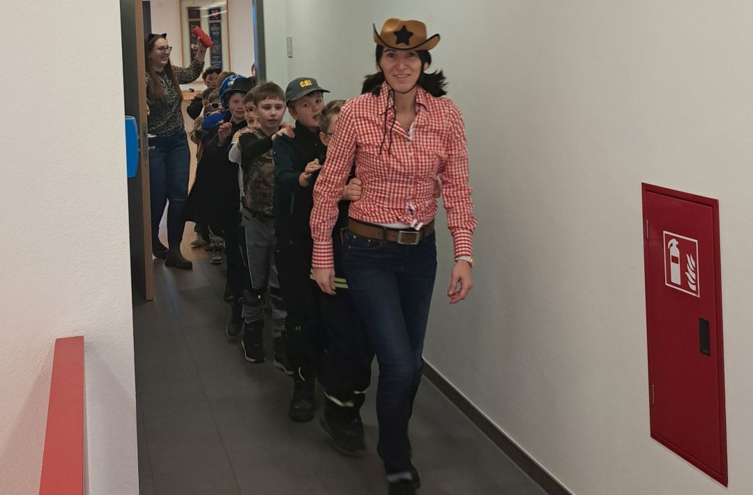 Verkleidet als Ritter, Fußballprofi, Zauberer oder Pirat – alles war vertreten und wie es sich für eine richtige Faschingsgaudi gehört, begann die Gruppenstunde mit einer Polonaise durchs Feuerwehrgerätehaus.