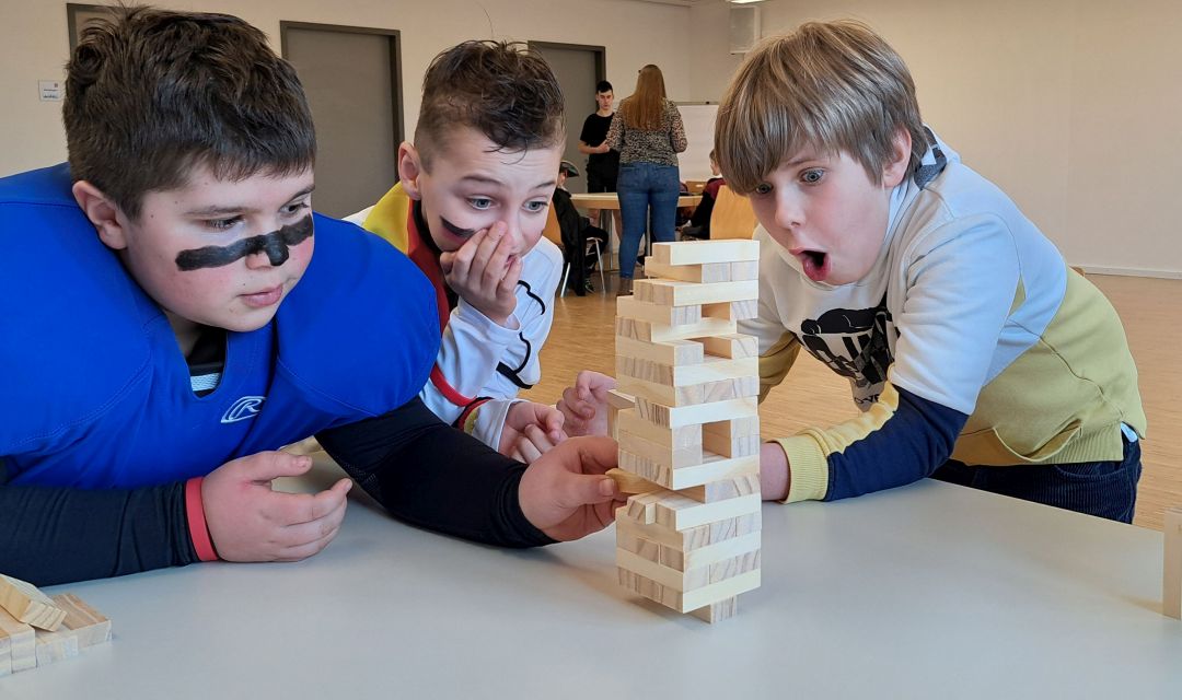 Hier wurde es spannend: Zwei Teams spielten gegeneinander und versuchten, den Turm möglichst lange stabil zu halten.