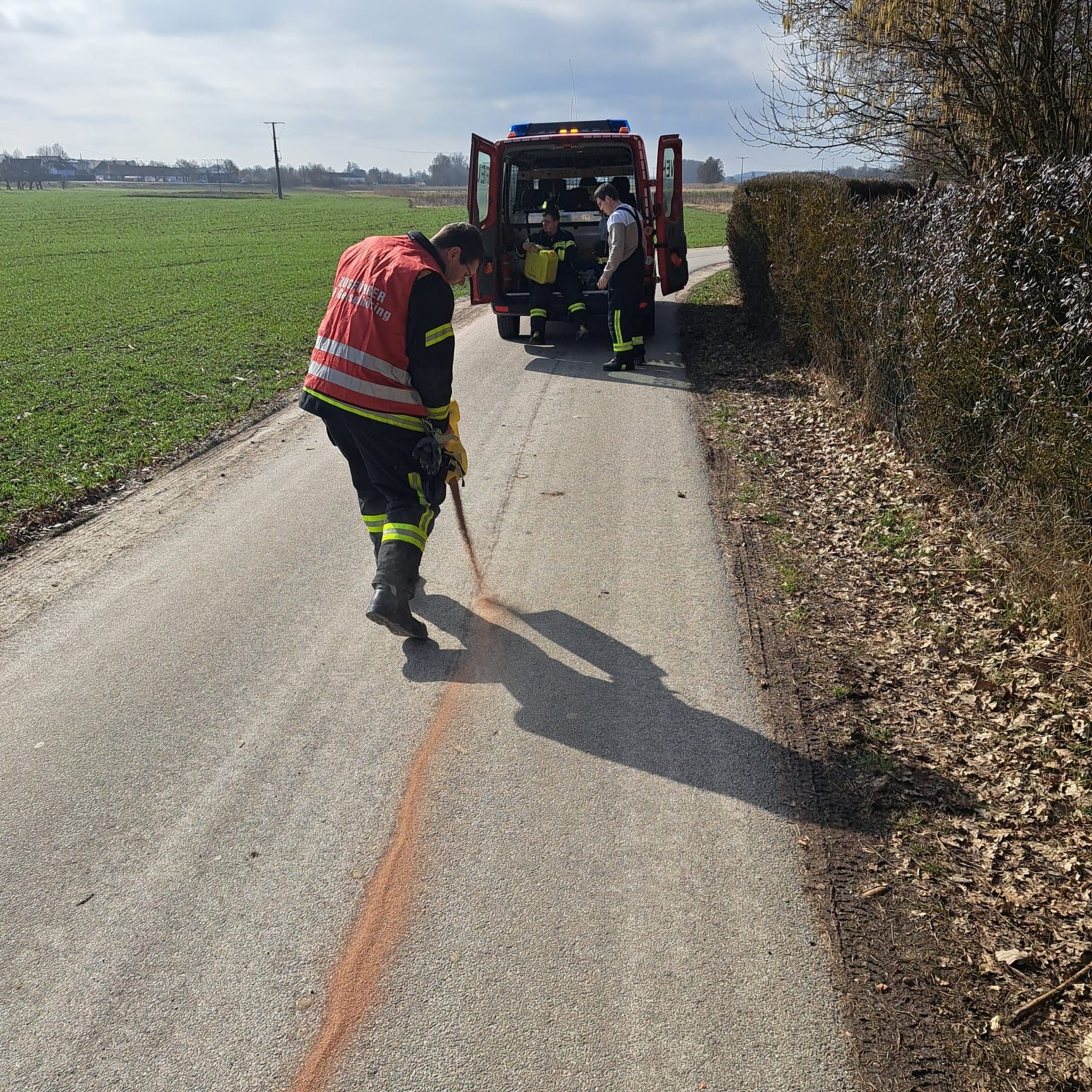 Nachdem eine landwirtschaftliche Maschine Öl verloren hatte, galt es, die dadurch entstandene Ölspur abzustreuen. Diese zog sich von der Mozartstr. über einen Teil der Landshuter Straße bis nach Greißing.Zur Abarbeitung der ca. 2 Kilometer langen Ölspur benötigen die Feuerwehrkräfte etwas mehr als zwei Stunden.